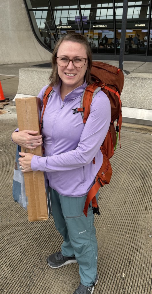 After some selfie taking lessons from my youngest last night (so that my blog won’t be cringy), I spent the morning repacking and weighing my pack for my flight this afternoon. After months of research and trial and error I have landed on the following things to bring.