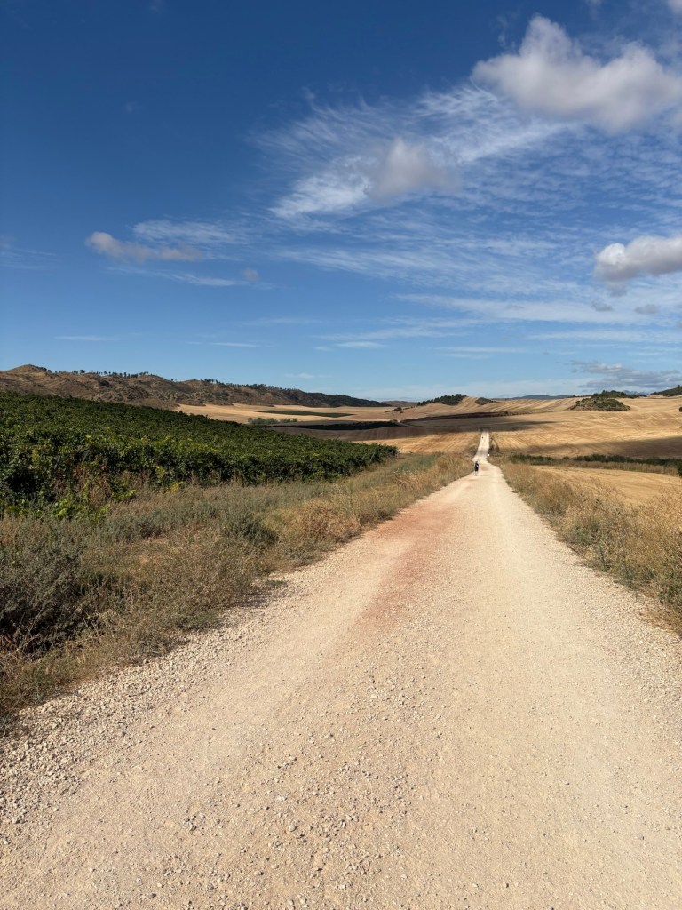 For some reason I was in a better mood after that… 😜 The path today was rolling hills of already harvested hay and ripening grapes. The sun was pretty strong for the second half of my day and it was a whole 9 miles of no shade. I fell into step with a woman from Austin named Danica and were chatting up a storm when we realized the miles go by so much faster when you are distracted from the thought of the backs of your knees getting sunburned, or how hot you are, or how tired your legs are.