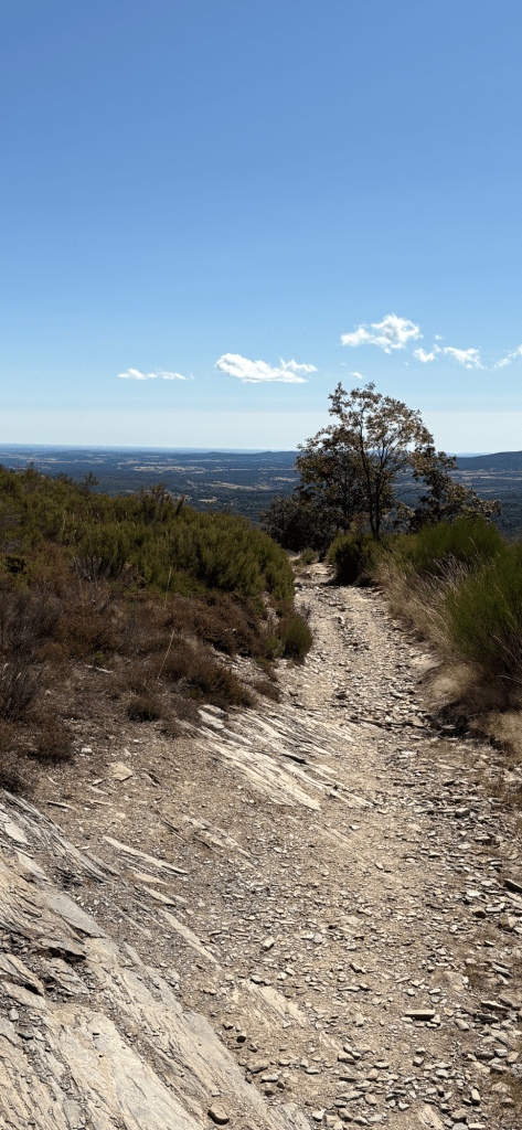I started out slightly earlier this morning because I did not want to be climbing the hill in the hottest part of the day. Today was mostly gradual uphill until the last 5 km/3miles which was steep! I think I took longer on the last bit than I had on the 15 km before that! The footing was not great; these mountains are shale I think, so lots of loose rocks. One false step and I could VERY easily turn an ankle or worse. I have heard of other pilgrims whose Caminos have already been cut short by injury, and almost daily I walk past some kind of memorial or shrine to a pilgrim who has died on the Way. Humbling. And sobering.
